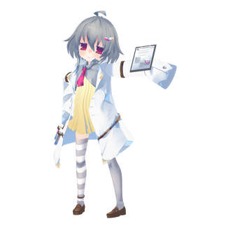 Vtuber 繰宮ノン様からご依頼をいただいて制作しました。立ち絵1枚からの制作でしたので、背面や横面のデザインを確認しながら進めました。手に持っているバインダーはキー入力で消したり出したりできるようにしました。とっても長袖なので、身振り手振りをするときに少し邪魔になってしまうことを避けるためお客様と相談して長袖は参考画像よりも短めにしました。